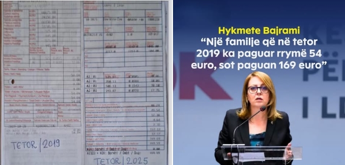 E verteta eshte qe kjo faktur e kesaj familjeje( shih foton 👇), ne 2019-en ka pagu €54, ndersa ne 2025 €160